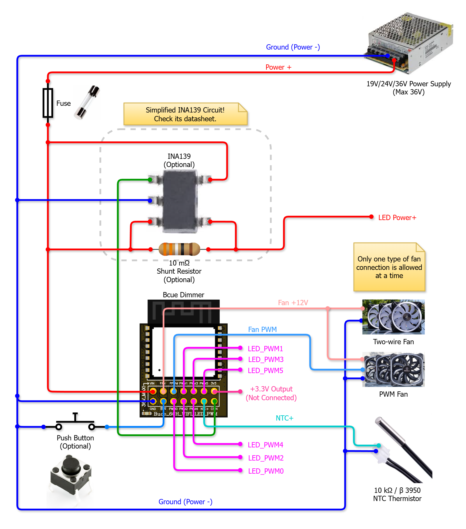 It is optimized for aquarium lighting but fits many LED projects. Connect a constant-current LED driver and high-power LEDs — Buce handles the control and scheduling.